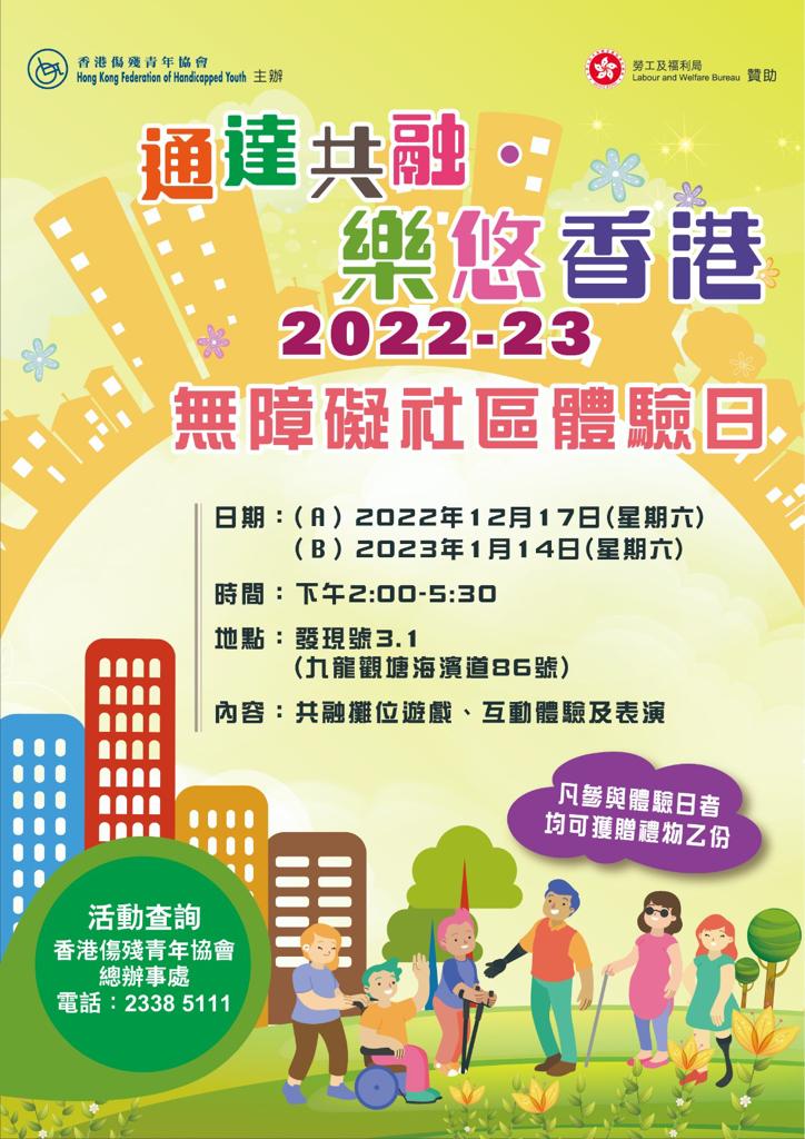 | 香港衞聰聯會(“本會”) 於2022年12月17日參與由香港傷殘青年協會在發現號3.1(觀塘海濱公園)舉辦的「無障礙社區體驗日」。本會積極參與是次活動,除設立2個攤位遊戲外,還參與多個表演,以響應大會主題及展現殘疾人士的力量、自信及回饋社會,共建無障礙和諧共融社區。 | ||||
