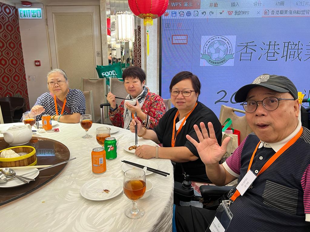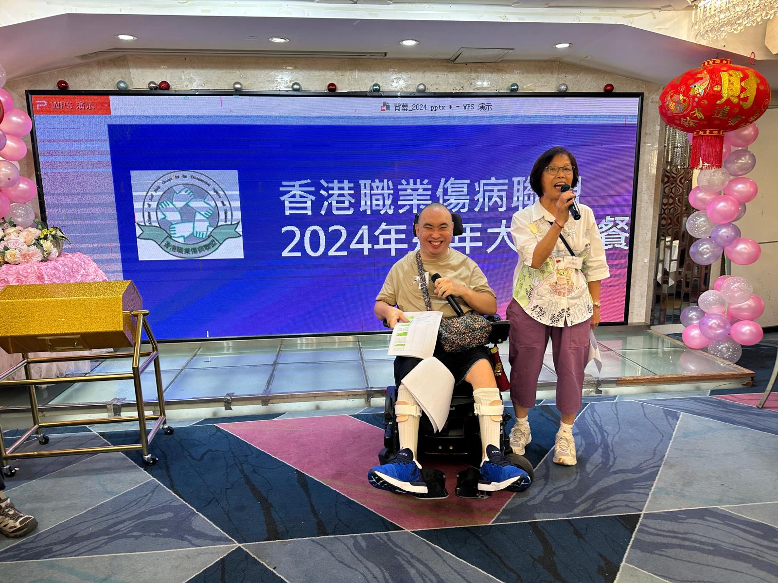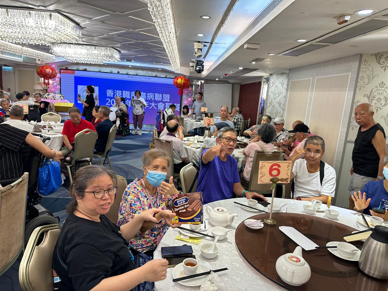 於2024年8月11日參與香港職業傷病聯盟("聯盟")2024年度週年大會("大會"),聯盟假九龍長沙灣貿易廣場富臨酒家舉行大會,並筵開十數席及設多輪抽獎助興,與出席大會各聯盟成員的會員及執委同樂,場面熱鬧。 聯盟由多個工傷及職業病互相組織於2001年5月由香港工人健康中心支持下成立,當中包括自強協會、護手社、肺積塵互助會及本會所組成的非牟利團體。聯盟作為關心及團結職業傷病工友的互助組織,以達致彼此交流、協調及支援為目的。 |