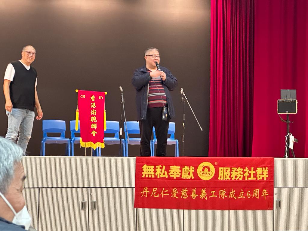 | 本活動由香港衞聰聯會(下稱︰本會)與丹尼奇賞仁愛義工隊(下稱︰義工隊)合辦,在2024年元旦日下午2至3時半,假油麻地梁顯利社區中心舉行。當天節目內容豐富,包括自由卡拉OK、有獎遊戲活動、與多名演藝人合照及派發福袋(丹尼奇賞小熊餅集團有限公司贊助曲奇餅、米、通粉;趙浩霖贊助有機蔬菜)等。在此,本會特別鳴謝各位熱心參與本活動的義工隊演藝人及各方好友。 | ||||