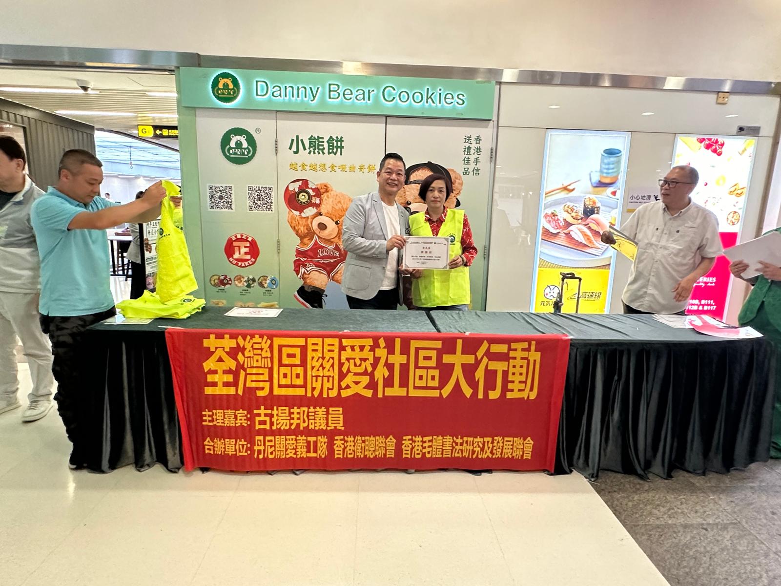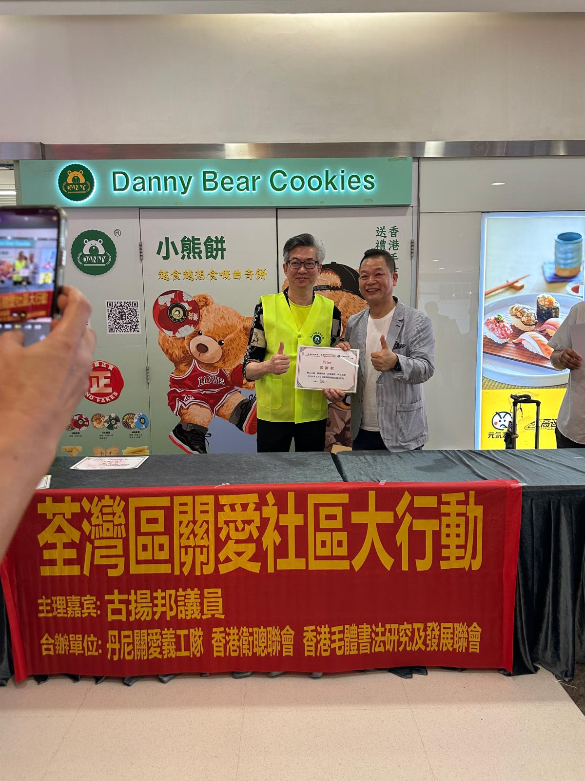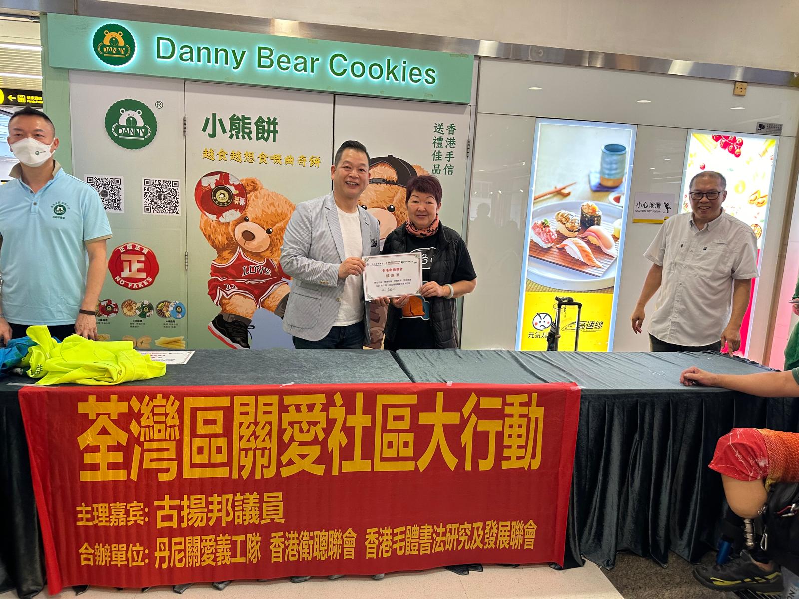 香港衞聰聯會(下稱︰本會) 於2024年5月1日下午與丹尼關愛義工隊及香港毛體書法研究及發展聯會假荃灣悅來酒店商場合辦「荃灣關愛社區大行動」(下稱︰本活動),並邀請荃灣古揚邦區議員擔任本活動主禮嘉賓。本活動亦邀請藝人、本會義工及地區各友好擔任嘉賓,在勞動節假期參與這有意義活動。 本活動向該區基層人士派發福袋,福袋內容非常豐富,希望以解該區基層人士生活物資所需之急,而在場參與本活動的眾人都感到非常有意義及開心。本活動為感謝各位嘉賓到來支持參與,丹尼關愛義工隊代表向主禮嘉賓古議員及邀請古議員向各位嘉賓頒發感謝狀以表謝意。 |
