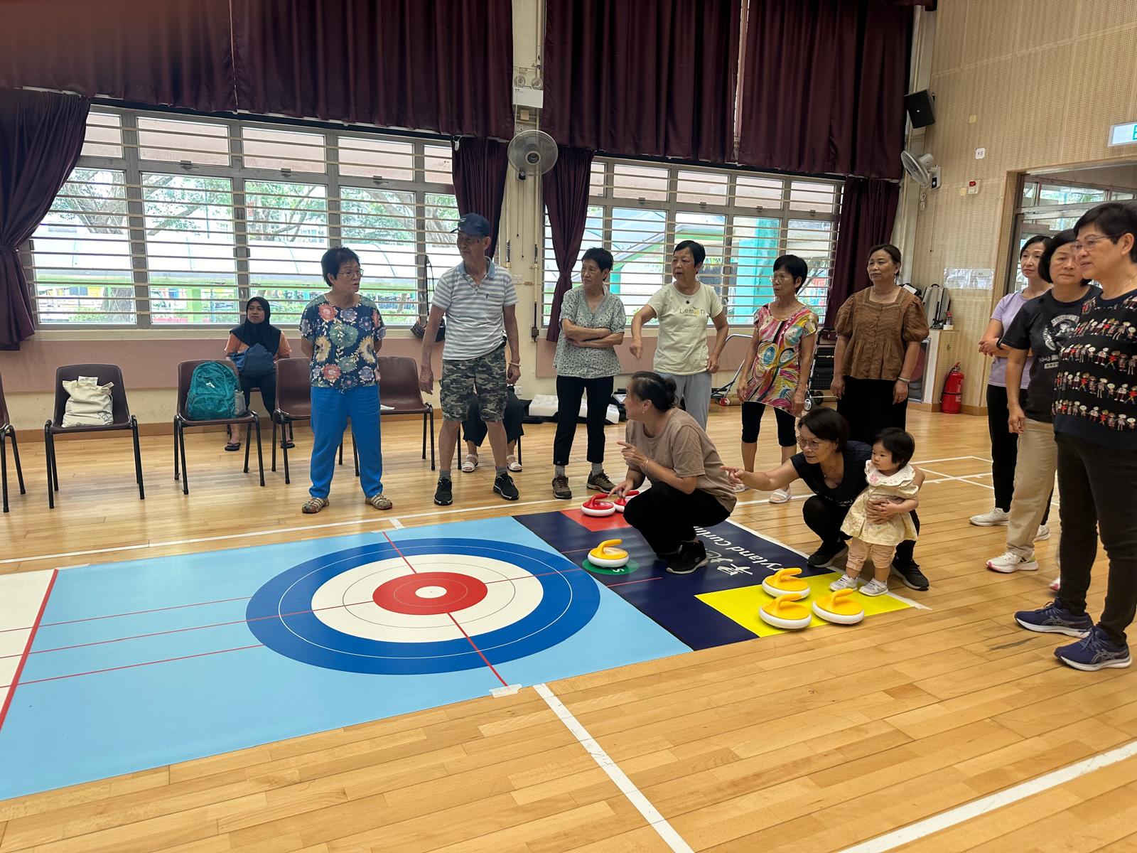 香港衞聰聯會(下稱︰本會) 於2024年7月26日下午2至4時假大埔富善社區會堂合辦「旱地冰壺體驗日」活動(下稱︰本活動)。當天本活動的主辦機構為大埔區陳勇華區議員辦事處,而陳勇華區議員亦到場參與,本會會員們亦有參與其中,而本會義工亦在場協助活動進行。 是次活動以地板冰壺這種長者合宜的新興活動作媒介,由中國香港地板冰壺總會的專業教練向在場的長者們介紹這運動,讓一眾長者認識及體驗。各參與者彼此交流、學習及合作這有益身心的活動,大家歡渡愉快時光。 |